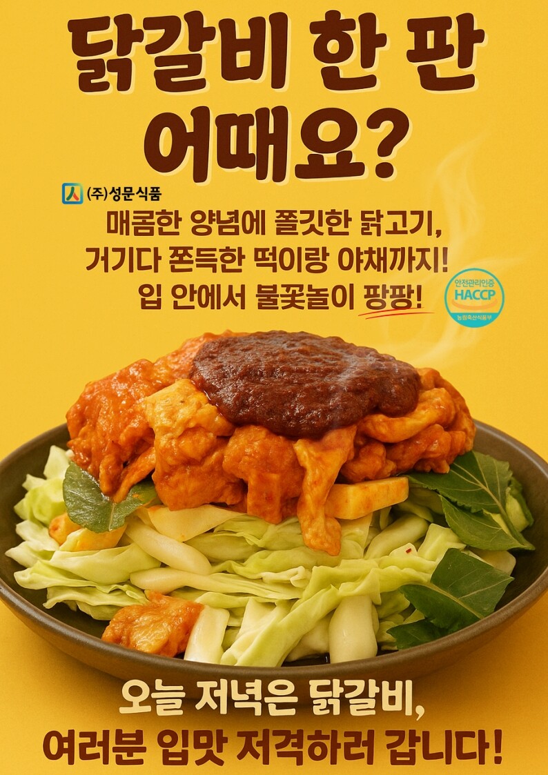 춘천 토박이 아버지가 직접 만든 양념으로 더 특별한 성문 춘천 닭갈비! 국내산 100%, HACCP 인증으로 믿고 먹는 찐 맛집 퀄리티!